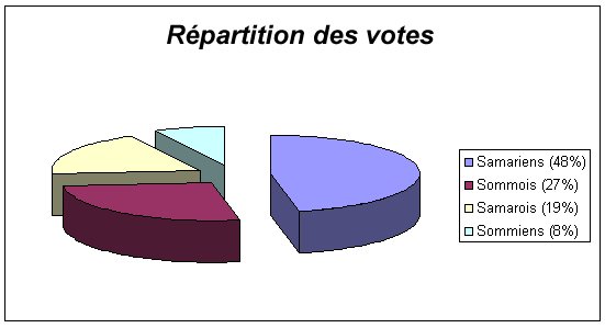 Sommois avec 27% des voix. Puis vient Samarois (19%) et Sommiens (8%).