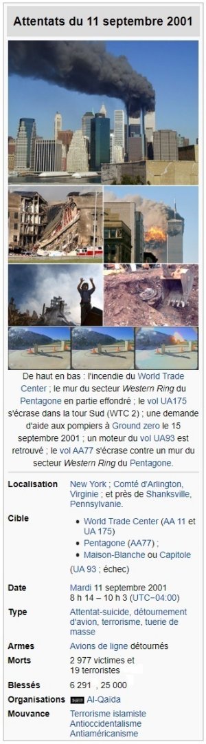 11 Septembre 2001 (sources Wikipedia)