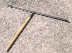 Outil servant à travailler le bois et constitué par une lame métallique comportant à une extrémité un ciseau et à l'autre extrémité un bédane.