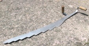 Le paroir : longue lame d’acier tranchante accrochée par une boucle au banc ou billot ; le long manche de bois en équille permet de développer un important effet de levier pour sectionner, pour travailler sous différents angles et pour profiler les semelles. Il mesure 60 cm de long pour une largeur variant entre 7 et 10 cm. Bois utilisé pour les sabots, le Bouleau.