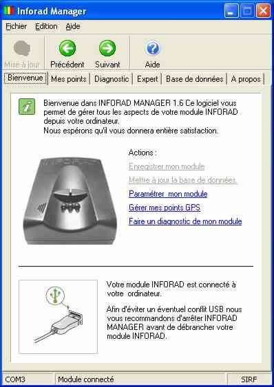 correctement connecté, il faut installer le logiciel Inforad Manager.