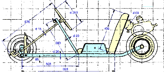 | 9 - | Siége rembourré mais pas de maintien latéral ! En fait l'ensemble pesait environ 45 kg et disait-on, pouvait atteindre les 50 km/h. |