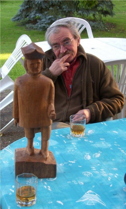 Avec son sculpteur Jean FAUQUEMBERGUE Baptisé avec une rasade de Whisky ...